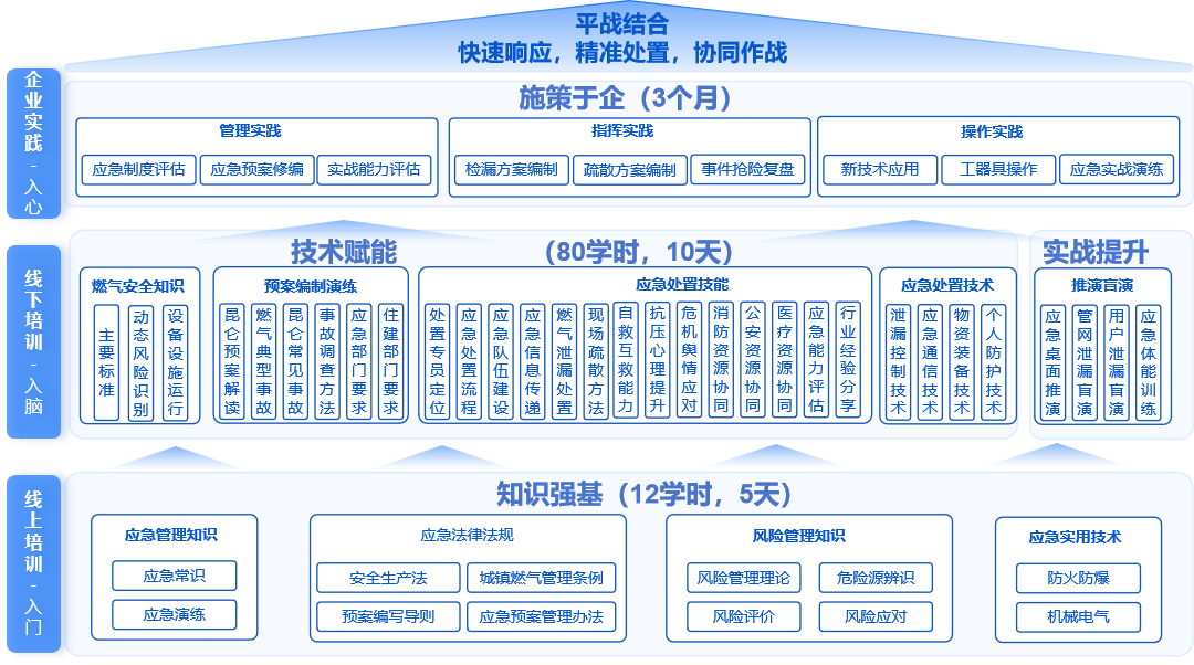 培訓(xùn)歷時(shí)數(shù)月,涵蓋線上培訓(xùn)5天、線下集中面授11天及成果實(shí)踐60天,參訓(xùn)學(xué)員包括該大型燃?xì)饧瘓F(tuán)來自全國各地的核心應(yīng)急處置骨干力量。
